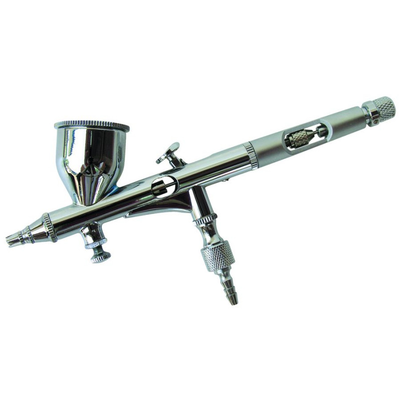 Barva se mísí se vzduchem uvnitř airbrushe. Množství barvy a vzduchu je plynule nastavitelné. Pomocí dvoufunkčního spouštěcího tlačítka se nastavuje množství vzduchu (stisknutím tlačítka) a množství stříkané barvy (zpětným tahem tlačítka). Má zadní nastavení zdvihu jehly a vestavěné plynulé nastavení tlaku vzduchu.