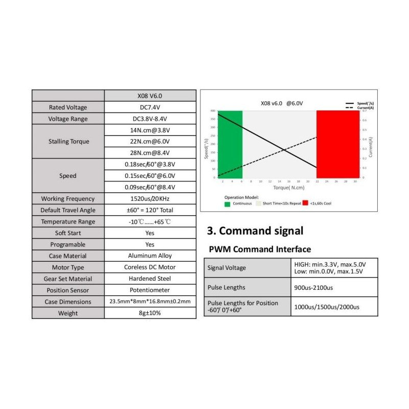 - rychlost [s/60°] při 8,4V: 0,09s