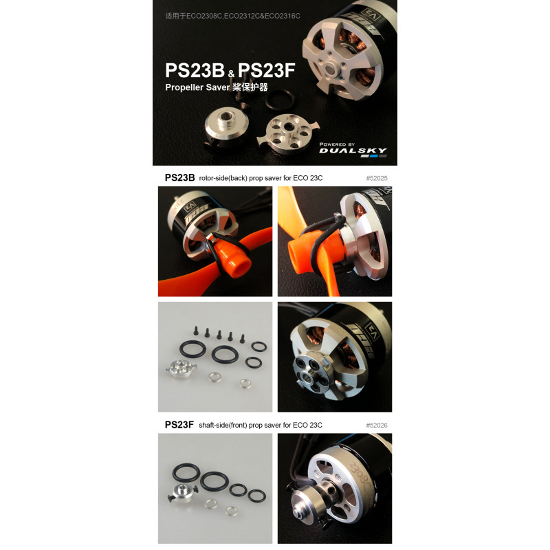 Náboj pro montáž na hřídel motoru DUALSKY ECO 23xxC nebo podobného motoru s průměrem hřídele 3 175 mm.Kompletní s pryžovými o-kroužky a středicími kroužky pro vrtule.