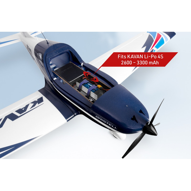 K napájení budete potřebovat čtyřčlánek LiPo s kapacitou 2600-3300 mAh a proudem alespoň 30C, doporučenoKavan 14,8V / 2600 mAh nebo 14,8V / 3300 mAh.