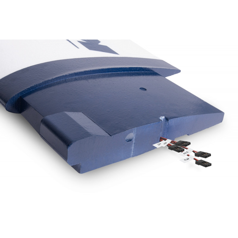 Modelové křídlo z pěnového EPO je dvoudílné s uhlíkovými táhly a uhlíkovou trubkovou spojkou. Je zajištěn šrouby. Křidélka a klapky jsou ovládány nezávisle dvěma servy s krátkými přímými táhly a jsou vybaveny funkčními LED polohovými a přistávacími světly.