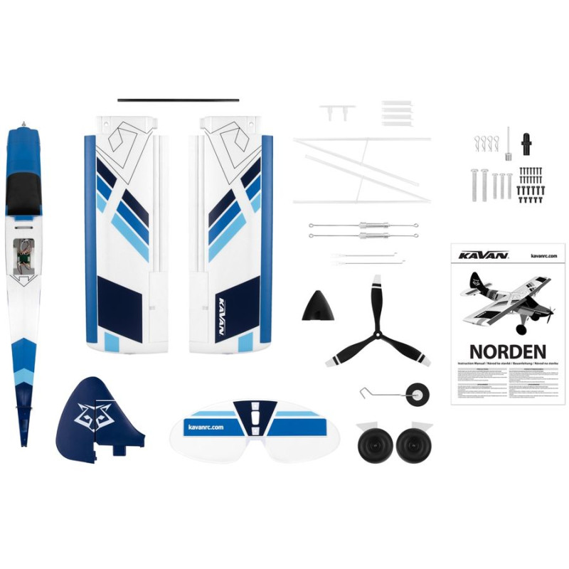 K ovládání modelu můžete použít i šestikanálovou počítačovou RC soupravu bez speciálních funkcí - v základním provedení jsou křidélka, klapky, směrovka připojeny pouze k jednomu kanálu přes propojovací desku umístěnou v prostoru kabiny. Tato deska také zajišťuje napájení LED diod. Ideální je samozřejmě použít alespoň sedmikanálovou počítačovou RC soupravu umožňující nezávislé ovládání křidélek a klapek dvěma servy, což dnes umí i levný Radiolink AT9S nebo AT10II či Futaba T6K nebo T10J. V tomto případě je nutné serva křidélek a klapek připojit samostatně (můžete použít přídavnou sadu kabelů, která se prodává samostatně). V návodu samozřejmě najdete podrobnou tabulku s osvědčeným výchozím nastavením výchylek směrovky, abyste Norden snadno připravili k letu, i když se jedná o váš první model s "plně mechanizovaným" křídlem.