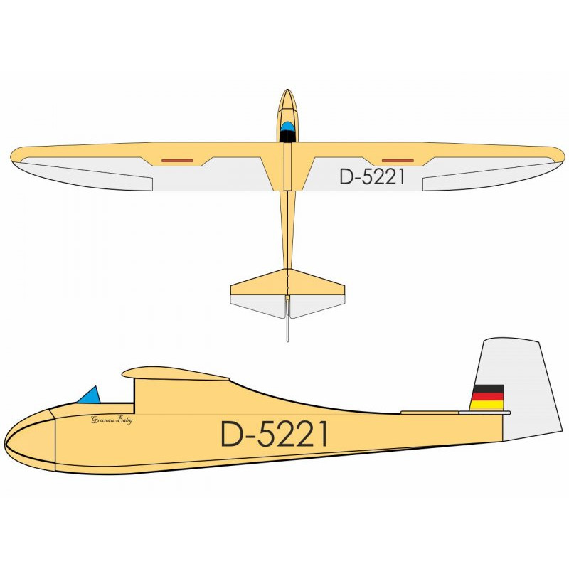 Model legendárního kluzáku Grunau Baby německé firmy PICHLER. ARF verze modelu, trup, potažené konce křídel podle obrázku. K létání za větroněm, na svahu nebo s elektrickým pohonem (volitelně k dispozici). K dostání v našem obchodě: najdete jej ZDE.
