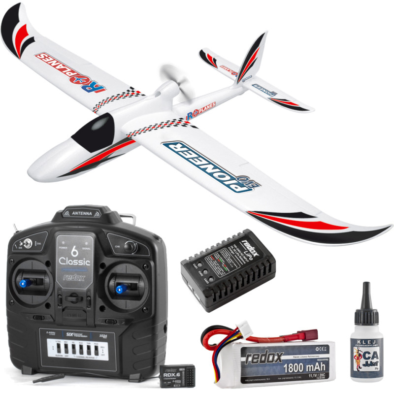 Motorový kluzák Pioneer EVO je celý vyroben z extrémně nárazuvzdorné pěny EPO. Uprostřed trupu, na věži, je umístěna vrtule, která model tlačí - díky tomuto řešení nedojde k jeho poškození při případném neúspěšném přistání. Model je vhodný pro začínající i mírně pokročilé modeláře.