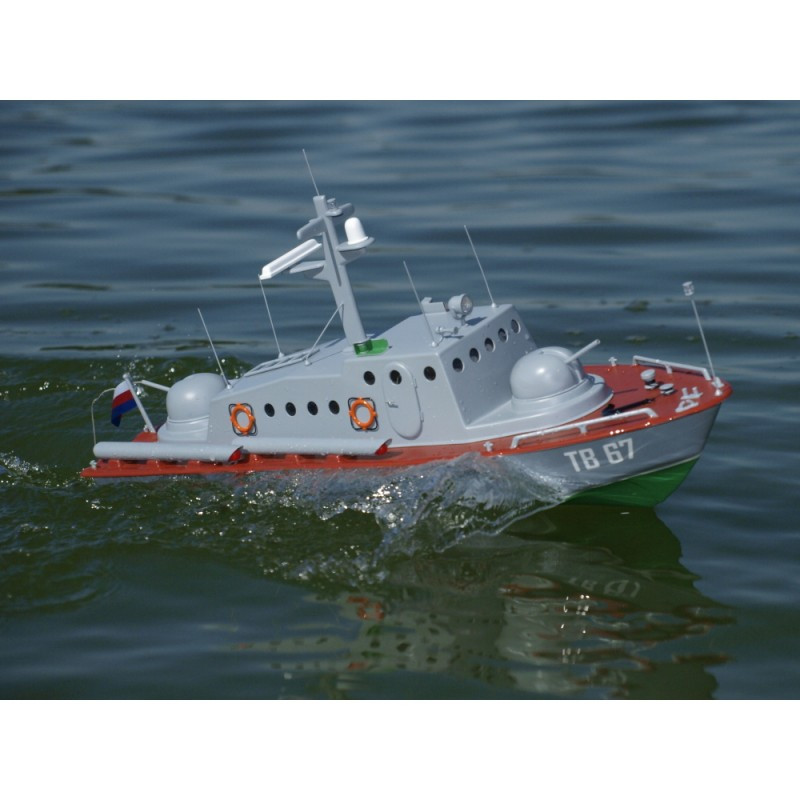 Model torpédového člunu MTB 67 od české firmy Vladyka, vyrobený z lisovaného plastu pro vlastní montáž a barvení. Stavebnice obsahuje: trup, hřídel, lodní šroub, kormidlo, sadu samolepek a drobné díly imitující palubní vybavení.