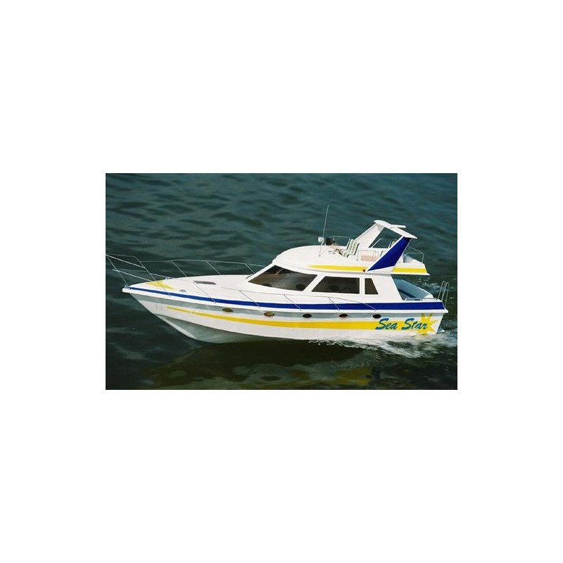 Model motorové jachty Sea Star české firmy Vladyka k vlastnímu sestavení a barvení, vyrobený z lisovaného plastu. Stavebnice obsahuje: trup, 2 vrtulové hřídele, 2 lodní šrouby, 2 kormidla, stojan, sadu samolepek a drobné prvky imitující vybavení paluby. Loď je schválena pro soutěže ve třídě F4A.