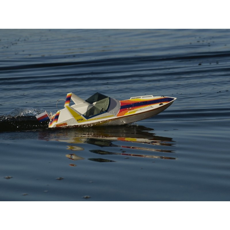 Rychlý a obratný RC motorový člun o délce 515 mm.