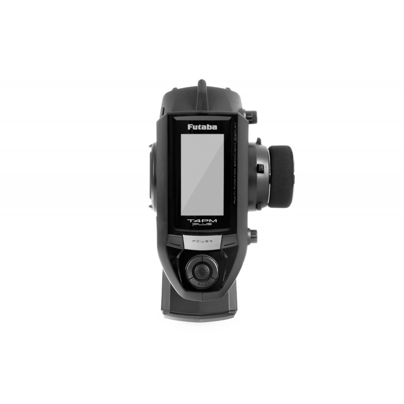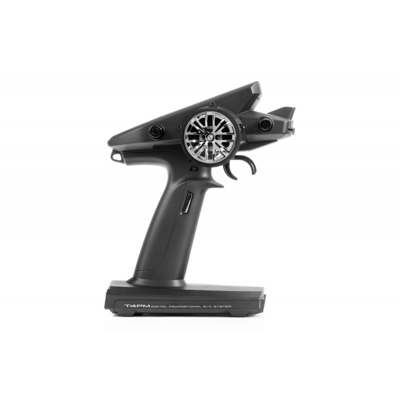 Vysílač T4PM plus v klasickém designu s rukojetí, která perfektně padne do ruky, je vybaven ovládacími prvky na volantu, rukojetí plynu, dvěma tlačítkovými spínači, jedním otočným ovladačem a pěti digitálními překryvy (3 kolem volantu, 2 na rukojeti). K programování slouží tři tlačítka a multifunkční joystick; snadnou orientaci v intuitivním menu zajišťuje velký podsvícený LCD displej. T4PM má paměť pro 40 modelů a širokou škálu pokročilých programovacích funkcí pro běžné i speciální modely aut - např. nezávislé ovládání a pohon (2 ovladače) předního a zadního kola pro pásy, dvouokruhové brzdy pro velké modely 1:5, gyroskop pro driftování, ABS, kontrola trakce, složení nádrže atd.