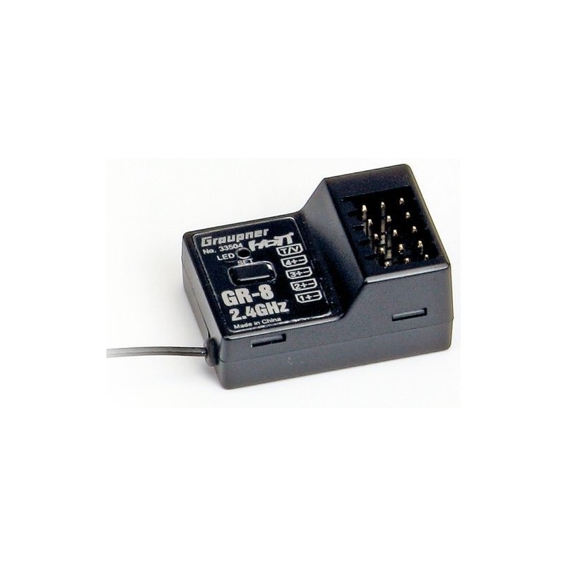 GR-8 Race HoTT - přijímač pro modely automobilů a lodí, kompatibilní s vysílači Graupner / SJ X-8N a X-8E.