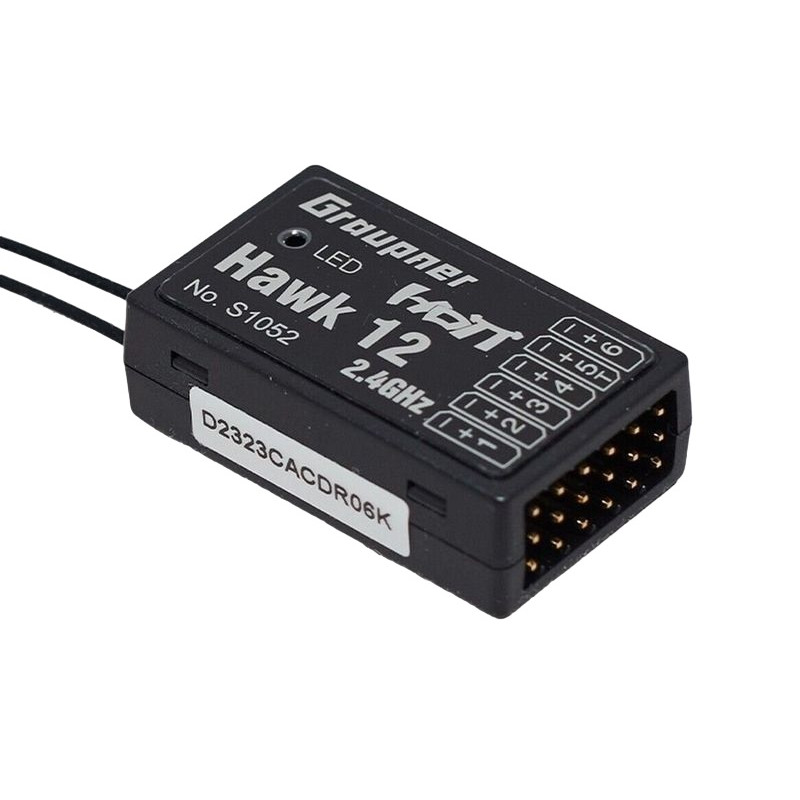 S přijímačem Hawk 12 představuje společnost Graupner výkonný šestikanálový přijímač s integrovaným 3-osým gyroskopem a 3-osým akcelerometrem obzvláště odolným proti vibracím, diferenciálními anténami, režimem vario a polohovacím režimem pro letadla s pevnými křídly nebo záchranným režimem a polohovacím režimem pro vrtulníky.