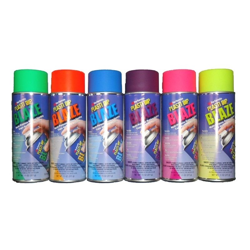 Plasti Dip Blaze je jedinečná kolekce neonových, poutavých barev, které se používají všude tam, kde je potřeba jasných a dobře viditelných barev, jako je zvýšení viditelnosti prvků pro zvýšení bezpečnosti. Plasti Dip Blaze je k dispozici v šesti atraktivních barvách: Blaze Blue, Blaze Orange, Blaze Pink, Blaze Yellow, Blaze Purple a Blaze Green.