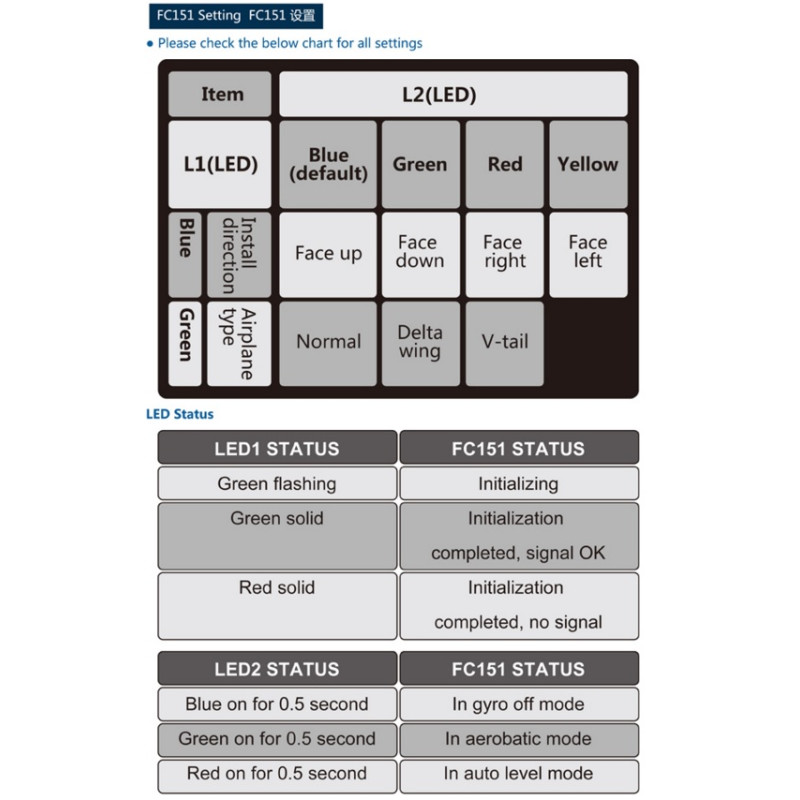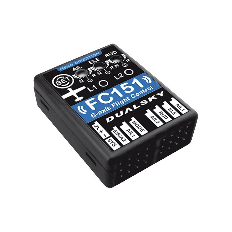 zapínání a vypínání gyroskopu pomocí kanálu 5; 3 možné pilotní režimy: začátečník (samostabilizace modelu, malé výchylky kormidel), pokročilý (samostabilizace modelu, velké výchylky kormidel), akrobatický (funguje pouze 3-osý gyroskop, možnost otáčení modelu ve všech osách v plném rozsahu)