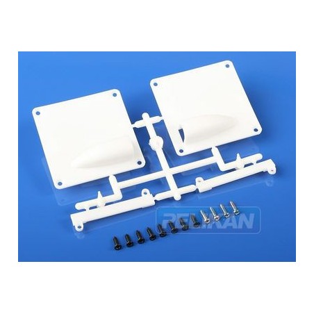 Kryt s reliéfním krytem tlačného zařízení a vestavěnou montážní zásuvkou pro serva "standardního" typu. Kryt s namontovaným servem se montuje pomocí 4 šroubů na křídlo modelu.