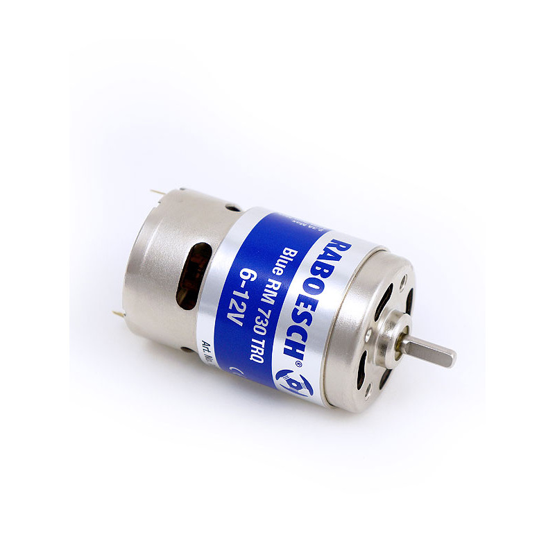 Modrý 12V kartáčový elektromotor RM730 TRQ od nizozemské společnosti RABOESCH.