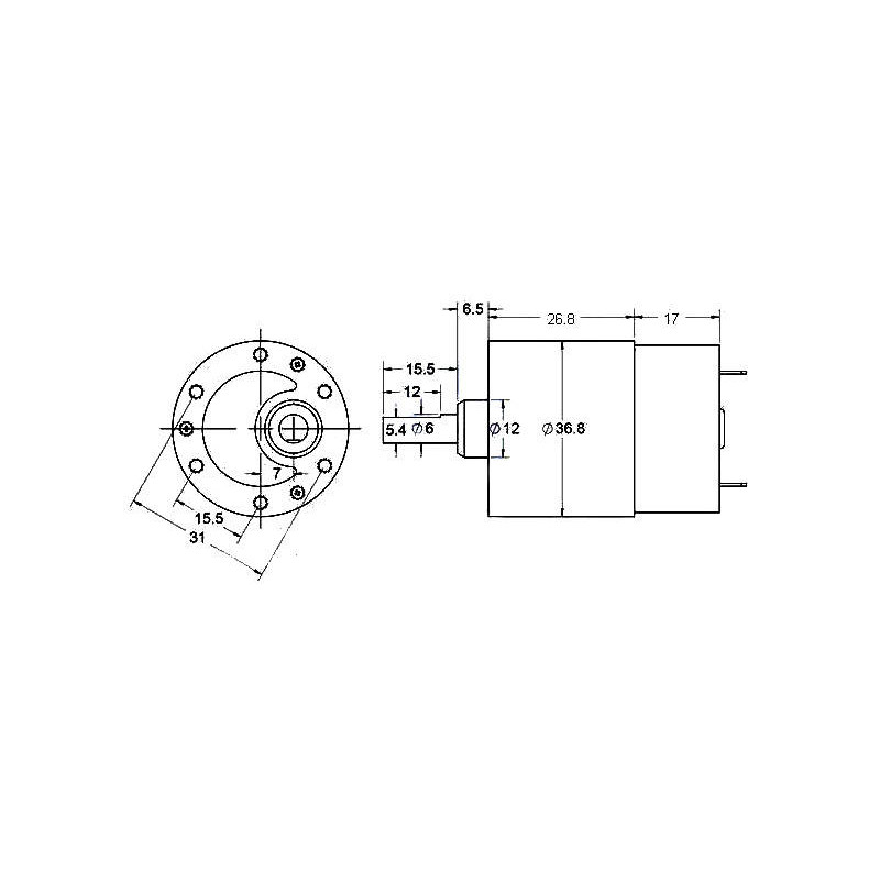 MT90 / 12V převodový motor - 30 otáček za minutu (7767)