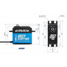 Velmi výkonné a rychlé 83g programovatelné digitální standardní servo se střídavým (bezkartáčovým) motorem s ocelovými převody a výstupní hřídelí uloženou na třech kuličkových ložiscích pro použití především ve velkých modelech letadel, vrtulníků, RC aut 1:8 a 1:10 atd. Pro vynikající chlazení i při velkém zatížení je servo umístěno v hliníkovém krytu.
