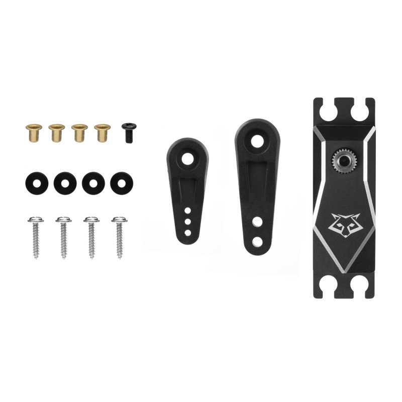 Programovatelné digitální servo s titanovými převody, střídavým motorem a dvěma kuličkovými ložisky pro použití v modelech vrtulníků jako ocasní servo. Pro vynikající chlazení i při velkém zatížení je servo v hliníkovém pouzdře.