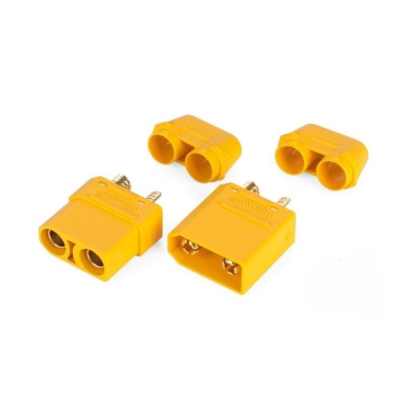 Systém kování XT90 PRO je určen pro aplikace se zátěží do 90 A. Konektor je chráněn proti nesprávné polaritě a zajišťuje bezpečný kontakt. Půlkruhové zásuvky umožňují bezproblémové pájení kabelů. Otvory zásuvek jsou otočené o 180 ° od sebe. Díky tomu bylo zabráněno riziku zkratu při pájení.Zlaté zástrčky zajišťují díky své rozpínací struktuře dokonalý kontakt.