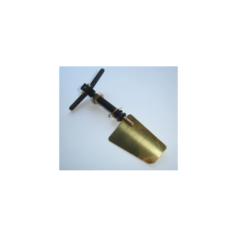 Kormidlo pro motorové čluny. Kormidlo a náprava jsou vyrobeny z mosazi, se závitovým pouzdrem a plastovou trubkou.