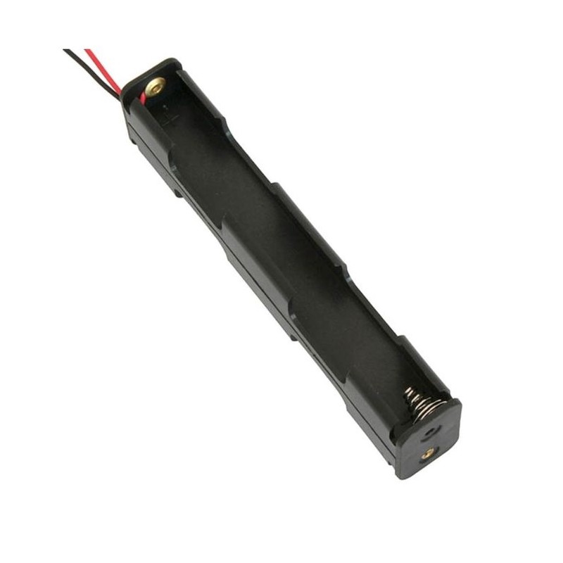 Nádoba na čtyři baterie R6 (AA - „prsty“) s montážními kabely.