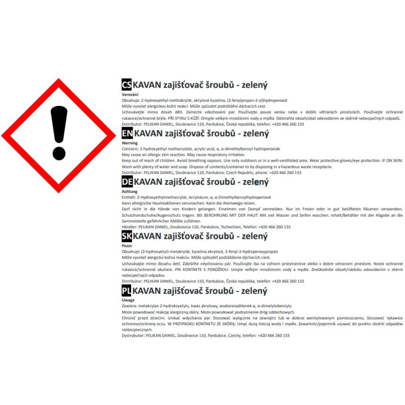 Upozornění ! Nebezpečné pro zdraví. Obsahuje 2-hydroxyethylmethakrylát, kyselinu akrylovou, a-dimethylbenzylperoxid vodíku. Může způsobit alergickou reakci kůže a podráždění dýchacích cest. Uchovávejte mimo dosah dětí. Zabraňte vdechování výparů. Používejte venku, používejte ochranný oděv (zejména vhodné rukavice).