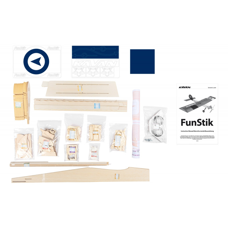 Náš akrobatický letoun FunStik v retro stylu "fokker-morane" vám přinese spoustu zábavy v dílně i na letišti. FunStik je ideálním projektem pro modeláře, který již umí pracovat s balsou, lepidlem a je obeznámen s hornokřídlými, "celotělovými" letadly. Díky laserem vyřezávaným dílům připomínajícím skládačku je stavba hračkou. Po osazení dobrého žhavicího motoru o výkonu .21-.25 (3,5-4,0 ccm) nebo střídavého motoru o výkonu 500-600 W je váš FunStik neuvěřitelnou radostí z létání, zábavou, která se nikdy neomrzí!