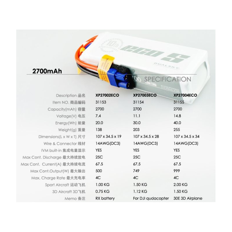 - Vybíjecí proud: 6,5 mm: série ECO-S: 25C (67,5A) / okamžitý 30C