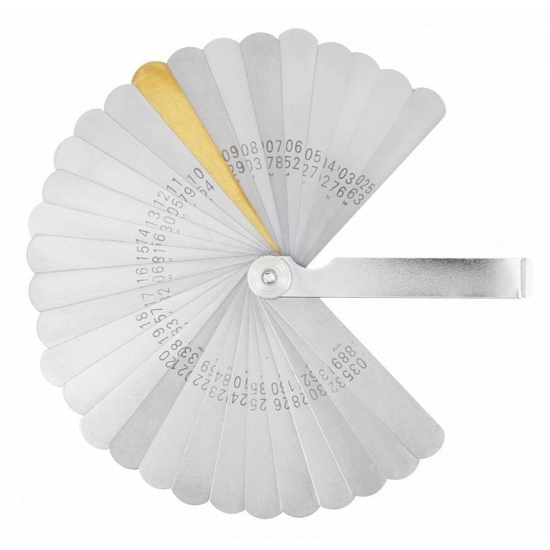 Měřidlo mezery na listu , které se používá k přesnému nastavení a kontrole šířky mezery: např. elektrických kontaktů, zapalovacích svíček, ventilových vůlí atd