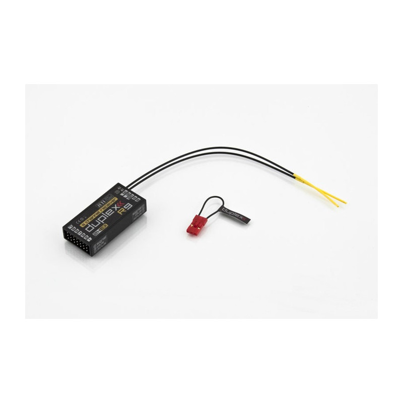 Devítikanálový modelářský přijímač DUPLEX R9 pracující v pásmu 2,4 GHz - kompatibilní s moduly DUPLEX, od renomované české společnosti JetiModel. Díky jednoduchému programování a párování, kompaktním rozměrům, nízké hmotnosti a možnosti sériového propojení dvou a více přijímačů do jednoho, jakož i možnosti plnohodnotného programování mixážních a kanálových funkcí (díky volitelnému modulu Jeti BOX) je Duplex R9 jedním z nejuniverzálnějších přijímačů na trhu. Kromě toho namontované volitelné telemetrické senzory, které přenášejí "živé" informace z modelu do vysílače prostřednictvím přijímače, dále zvyšují hodnotu výrobku.