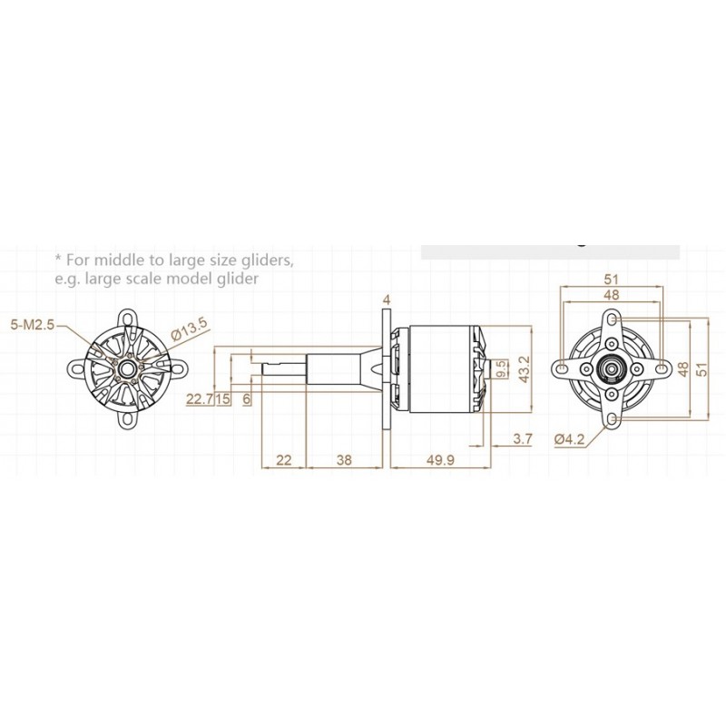 Určeno pro Dualsky XM42xx řady EA V3, ECO V2 a jako náhradní díl pro motory 42EGL.