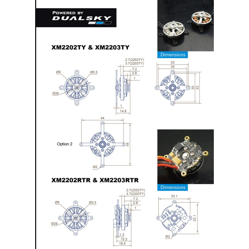 Vinutí motoru zaměřené na dosažení maximálního tahu a optimalizované pro vrtule PT. Osa motoru je uvnitř dutá (snížení hmotnosti). S motorem jsou dodávána dvě různá lůžka (montážní příčníky) z laminátu.