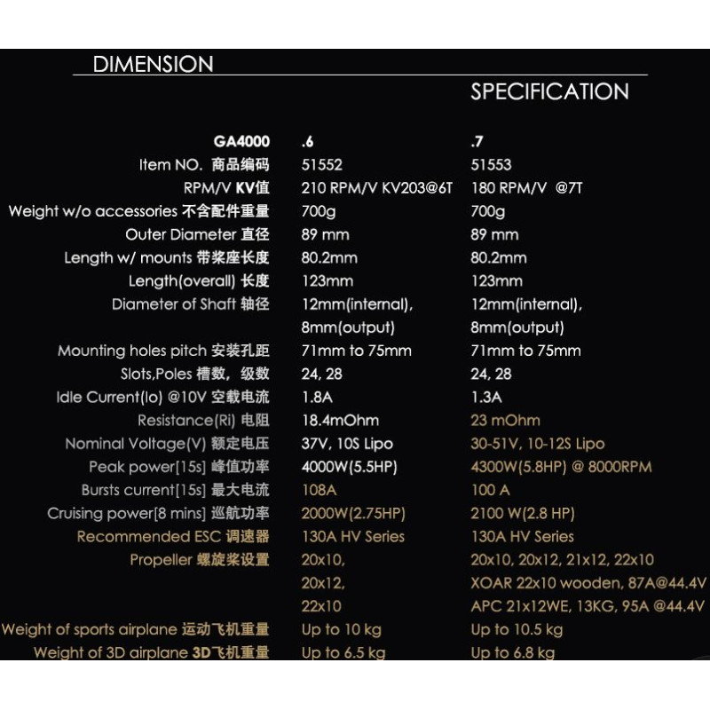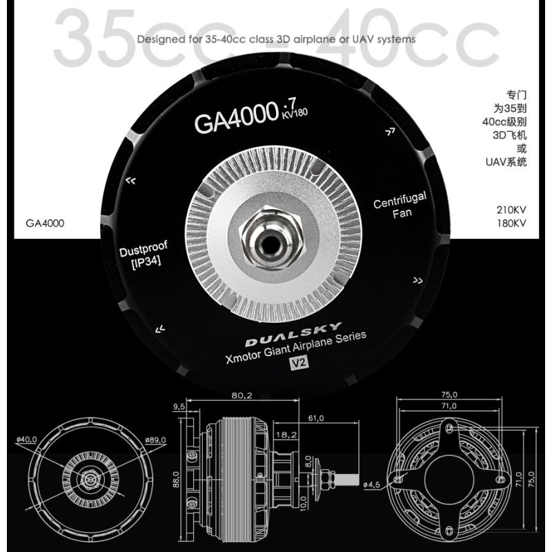 Špičková řada elektromotorů Dualsky pro velké modely. GA4000.6 je určen pro modely s hmotností do 10 kg nebo 3D akrobatické modely s hmotností do 6,5 kg. Náhrada za benzínové motory o objemu 35-40 cm3