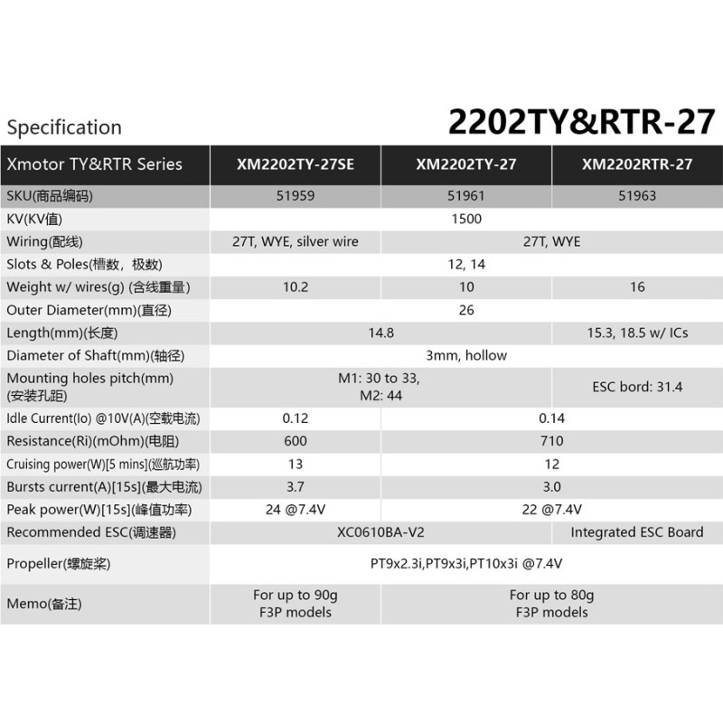 Vinutí motoru zaměřené na dosažení maximálního tahu a optimalizované pro vrtule PT. Osa motoru je uvnitř dutá (snížení hmotnosti). S motorem jsou dodávána dvě různá uhlíková lůžka (montážní příčníky).