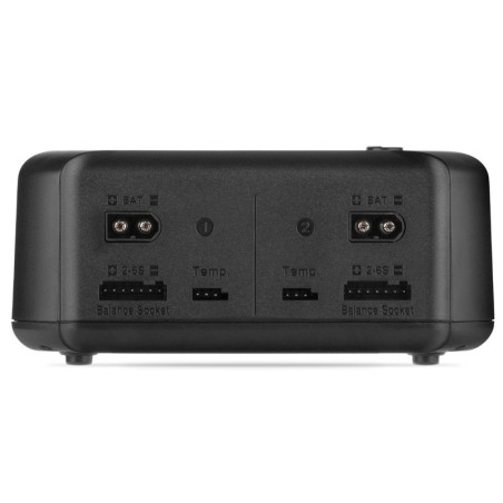 Nabíječ je vybaven výstupními zásuvkami XT60 v obou kanálech a univerzálními zásuvkami pro servisní konektory JST-XH, které umožňují přímé připojení bateriových kabelů a servisních konektorů JST-XH ze sad 2-6S - u sad s konektory XT60 a JST-XH se lze zcela obejít bez nabíjecích kabelů a adaptérů. Pro připojení servisních konektorů z jiných systémů lze použít standardní adaptéry Sky RC.