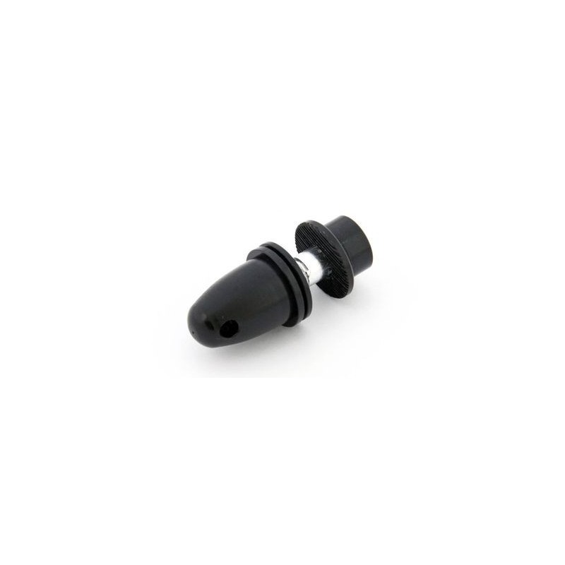 Samosvorný hliníkový náboj s víkem Redox pro pevné vrtule, používaný u létajících modelů s elektrickým pohonem.
