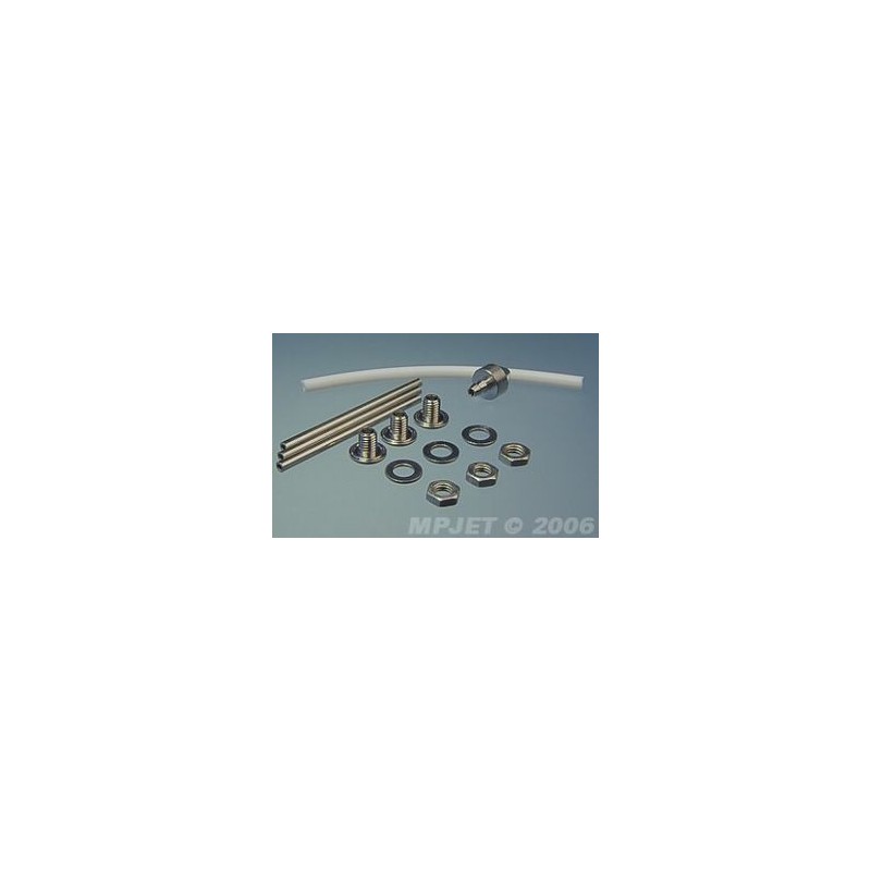 Sada hadiček a koncovek od společnosti Mp-Jet pro palivovou nádrž nebo přenosný kanystr pro doplňování paliva do modelů.