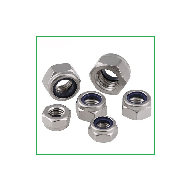 Matice z nerezové oceli s plastovým samosvorným límcem.