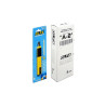 Víceúčelový nůž pro řezání papíru, fólie atd. Rukojeť nože je vyrobena z vysoce kvalitního ABS a je opatřena gumovým překrytím pro větší pohodlí. Čepel je vedena v kovovém kluzáku z nerezové oceli. Pružinová západka skluzu umožňuje snadné vysouvání a zasouvání čepele a zároveň dostatečnou silou zajišťuje polohu čepele během používání. Ocelová krytka na konci nože zabraňuje náhodnému vysunutí čepele a slouží také k odlamování opotřebovaných segmentů.