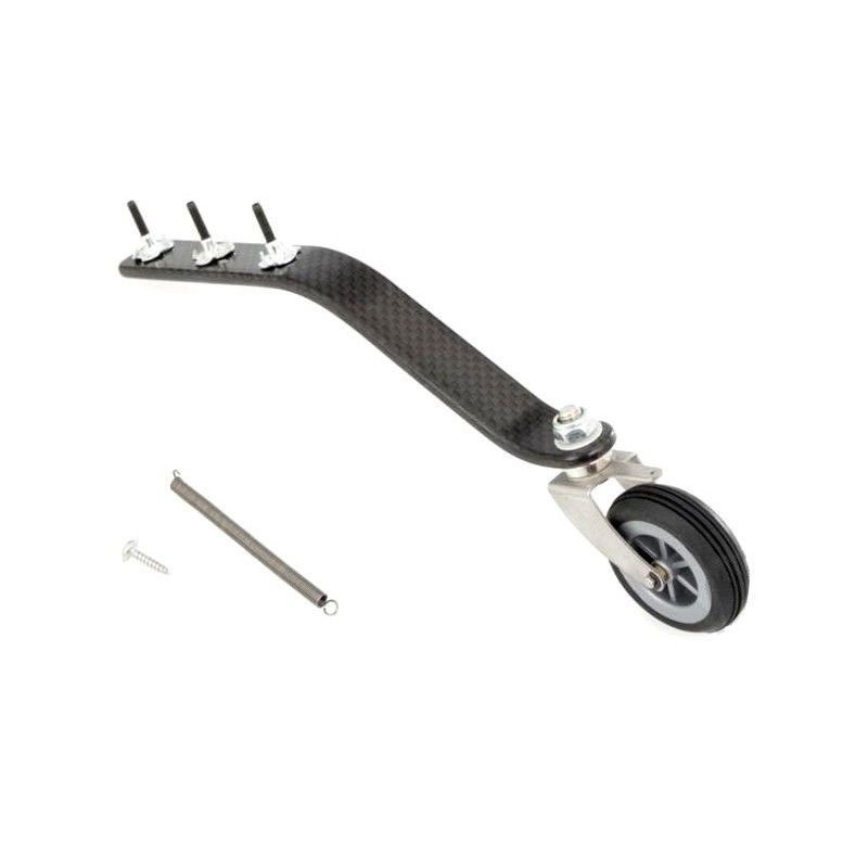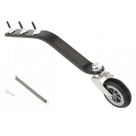 Karbonový, odolný a lehký ocasní podvozek pro létající modely. Kolo je řízeno připojením páky kola k posunovači kormidla.