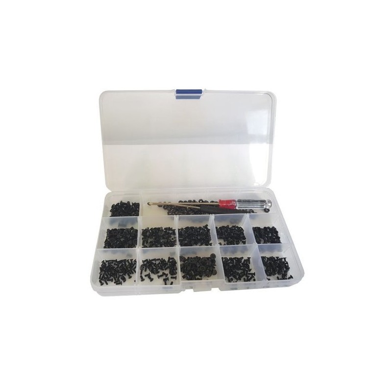 Sada zápustných šroubů a matic (černá) se dvěma šroubováky.
