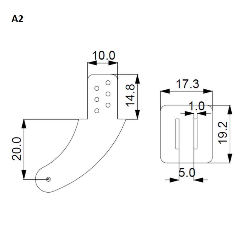Laminátová páka výškovky, směru nebo křidélek pro létající modely.