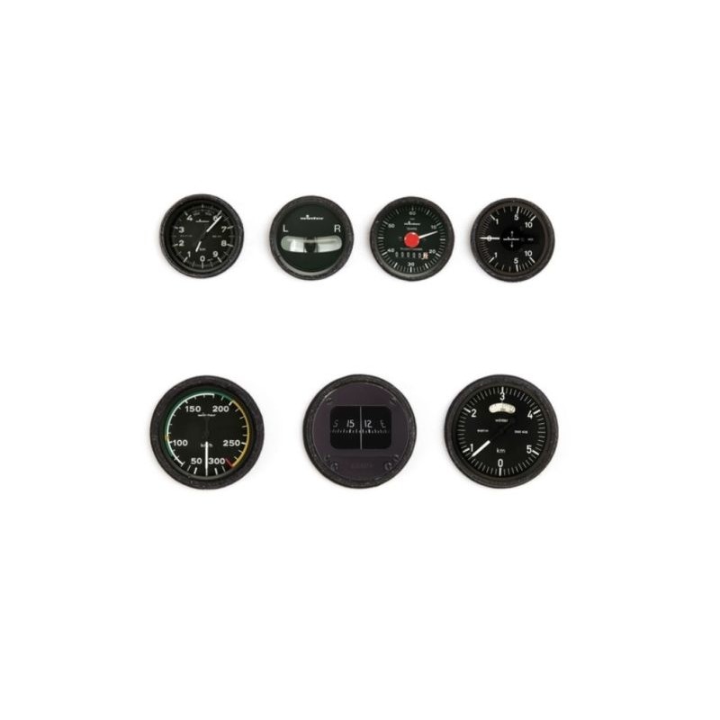 Sada moderních palubních nástrojů v měřítku 1: 4 německé společnosti Aero-naut. Sada se skládá ze čtyř malých a tří velkých hodin a laserem řezaných překližkových podložek (disků).