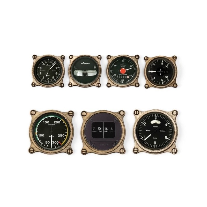 Imitace palubních nástrojů německé společnosti Aero-Naut pro makety modelů.