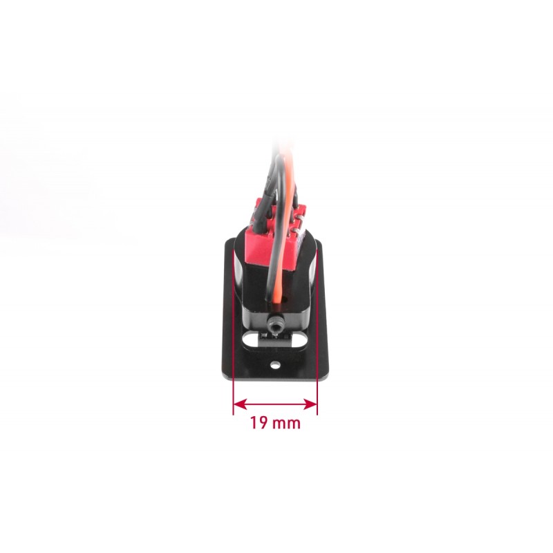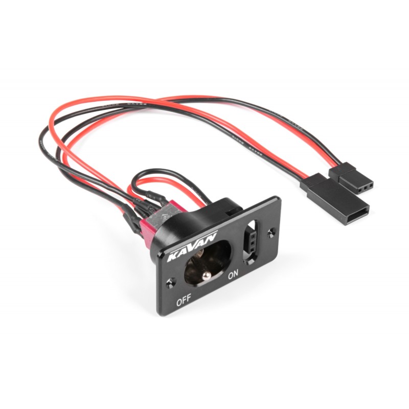 Vypínač s nabíjecí zásuvkou je vyroben z hliníkové slitiny, která zajišťuje lehkost a kvalitu, což je přesně to, co potřebujeme. Konektory kompatibilní s JR a Futaba .