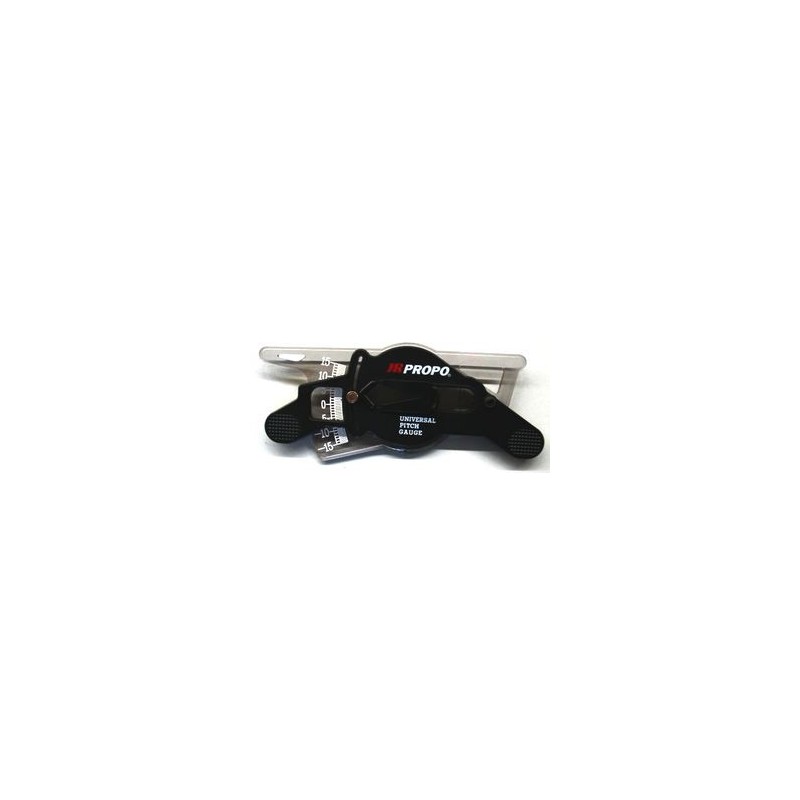 Precizně vyrobený úhloměr od JR Propo pro měření úhlů sklonu hlavních lopatek u vrtulníků třídy 50-90.