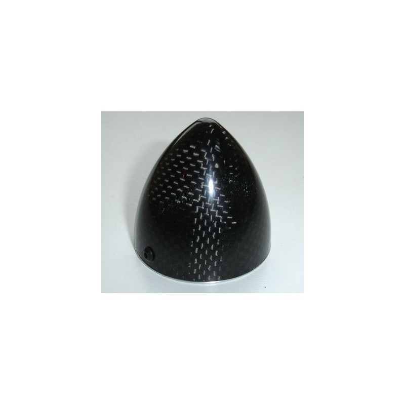 Uhlíková čepice s prolamovanou hliníkovou základnou, česká výroba. Základna je namontována na hřídeli motoru a čepička je po obvodu přišroubována šestihrannými šrouby M3.