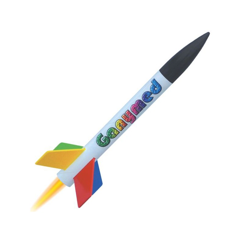 Raketa Ganymed vyrobená německou společností Raketenmodellbau Klima GmbH, která se specializuje na výrobu raketových motorů a raket. Součástí stavebnice je brzdicí popruh.