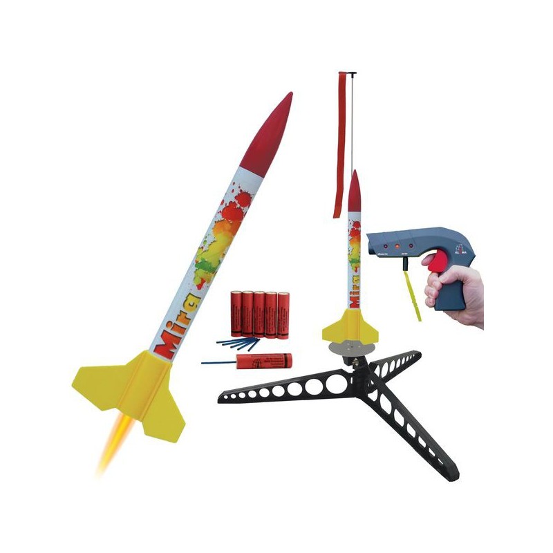 Raketa Mira vyrobená německou společností Klima GmBH, která se specializuje na výrobu raketových motorů a raket. Model využívá plastové stabilizátory, které jsou odolné proti poškození při přistání. Součástí balení je také padák.