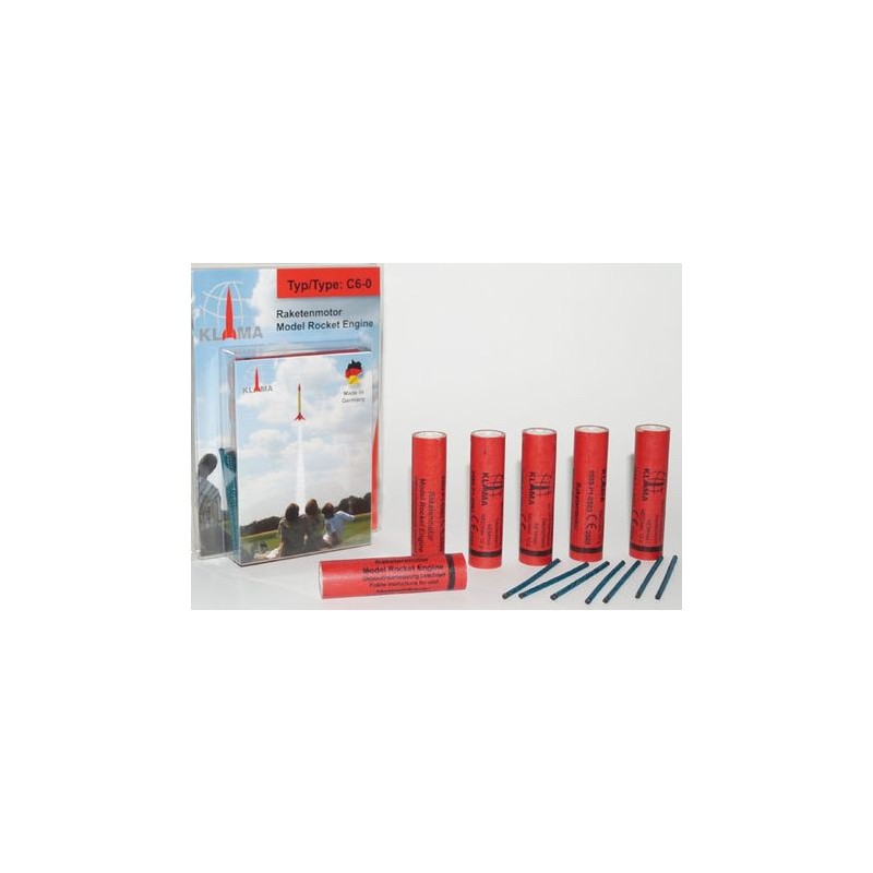 Raketový motor C6-0 pro raketové modely německé společnosti Klima se specializací na výrobu raketových motorů a raket.