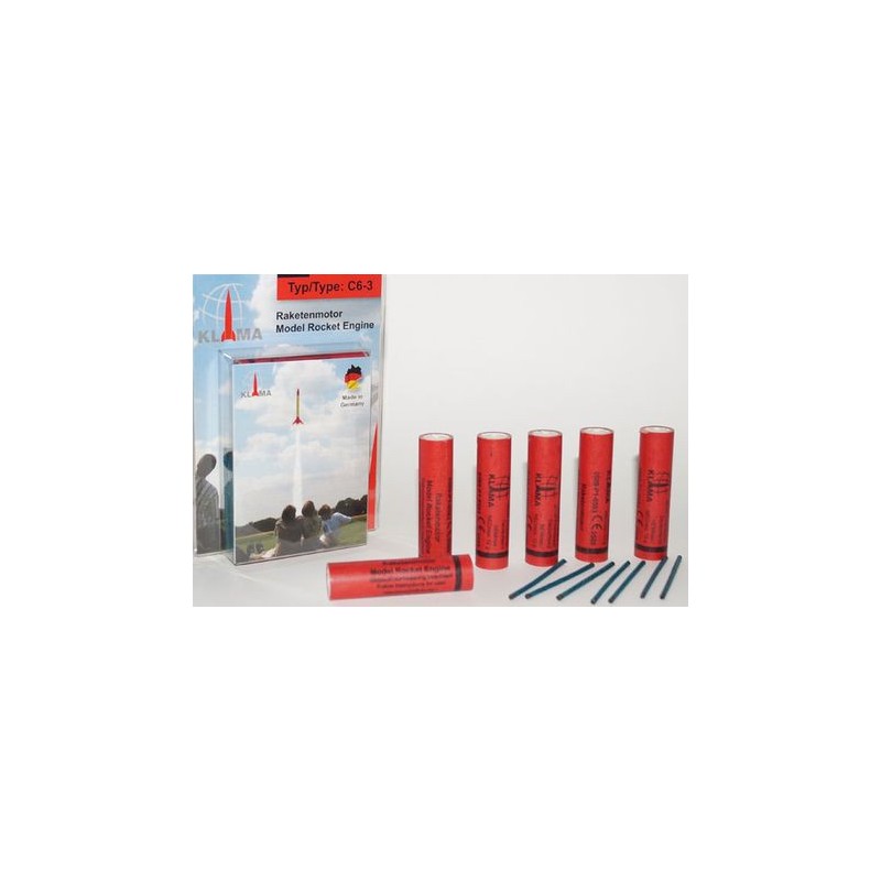 Raketový motor C6-3 pro raketové modely německé společnosti Klima se specializací na výrobu raketových motorů a raket.